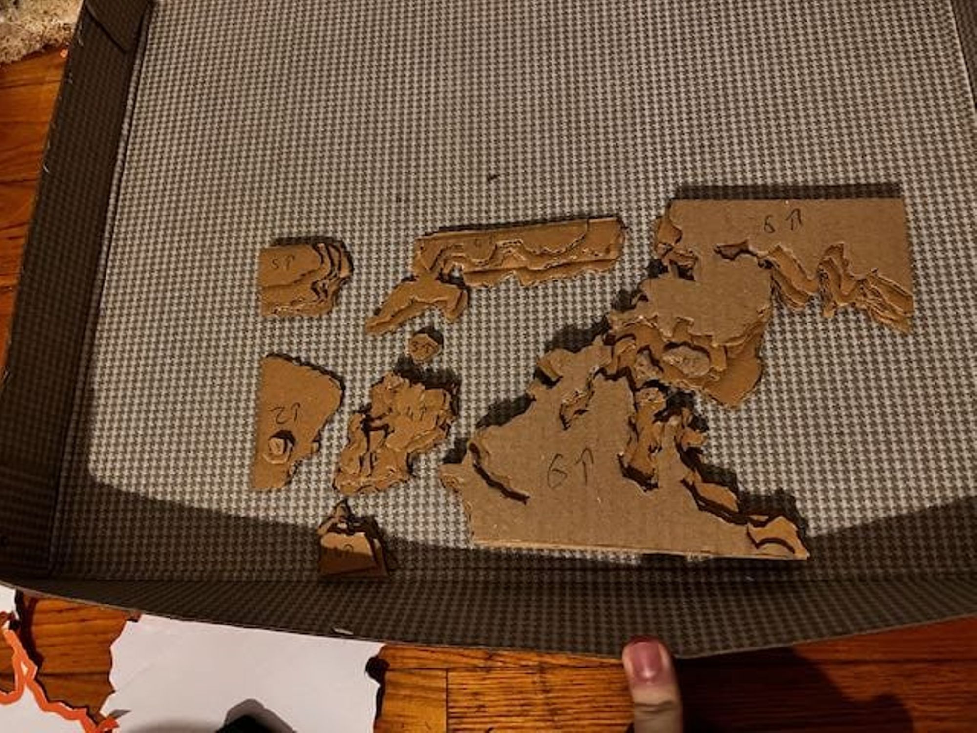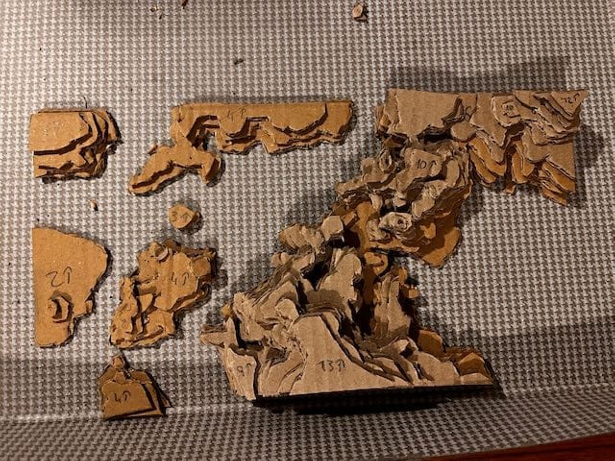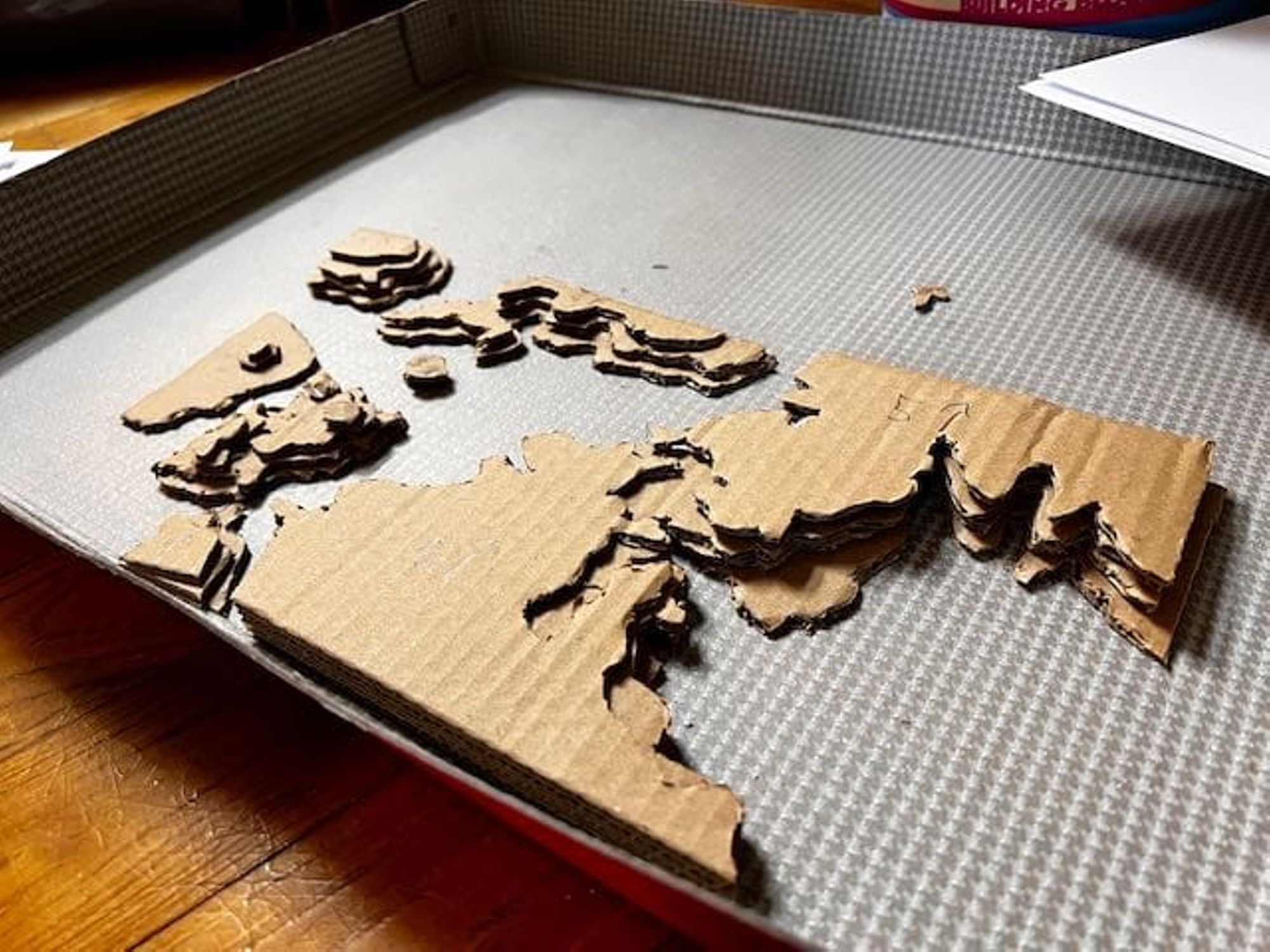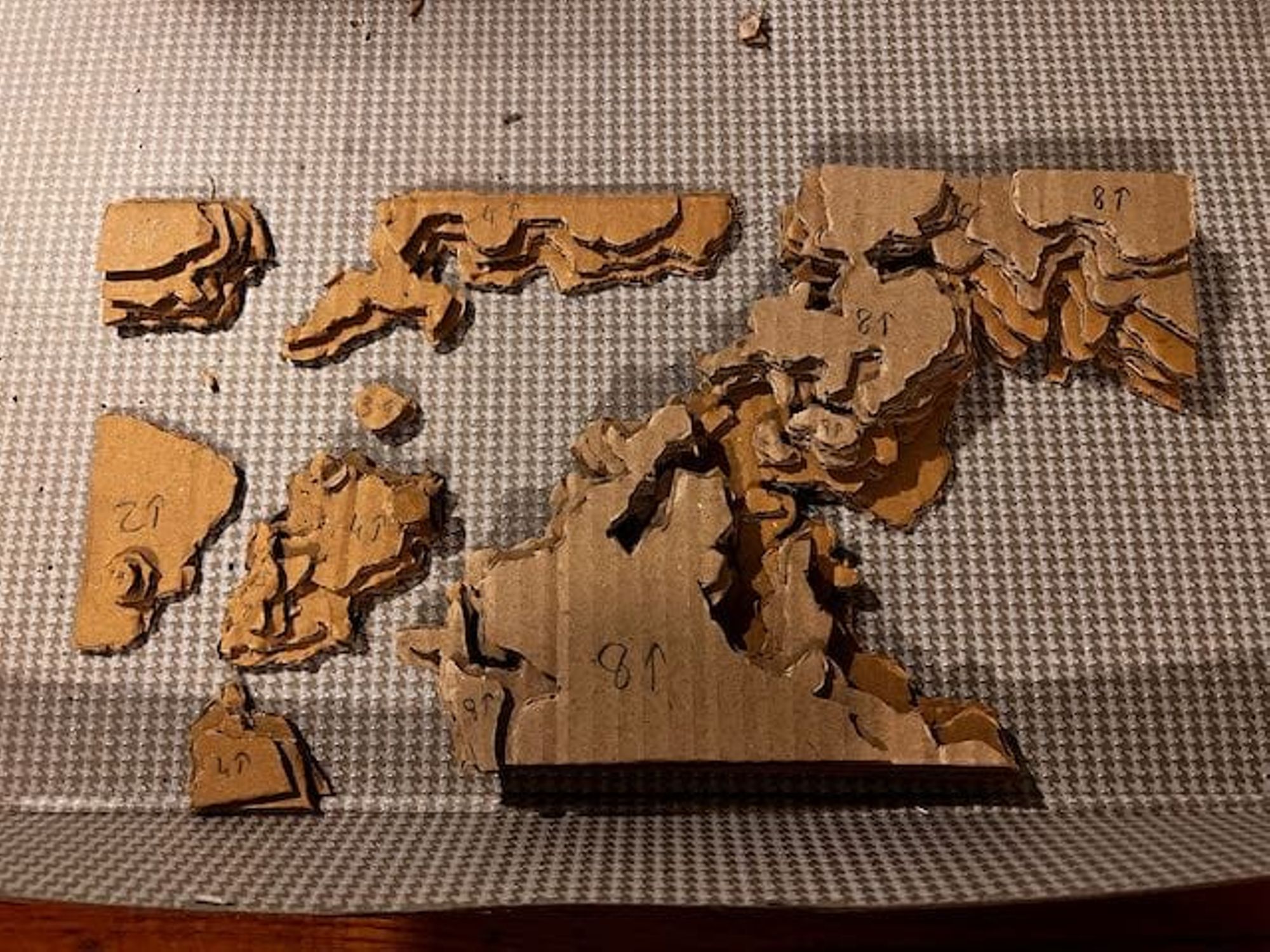 - Utiliser ces feuilles comme patron pour découper les couches de carton (voir les photos).