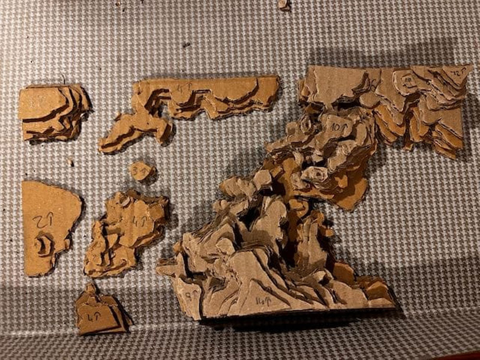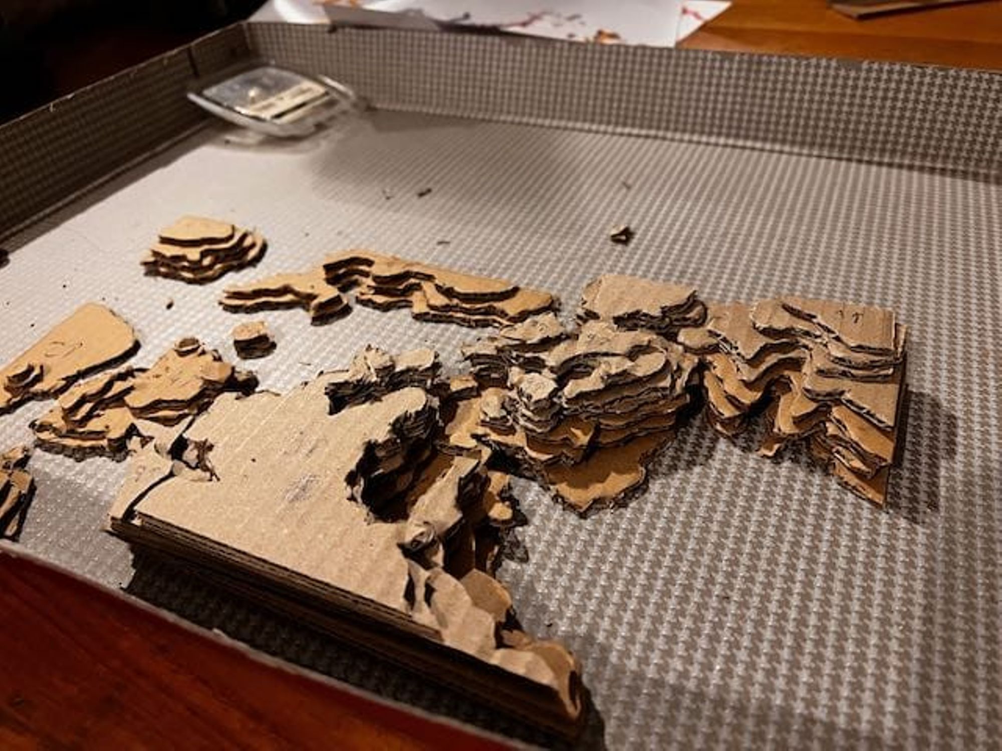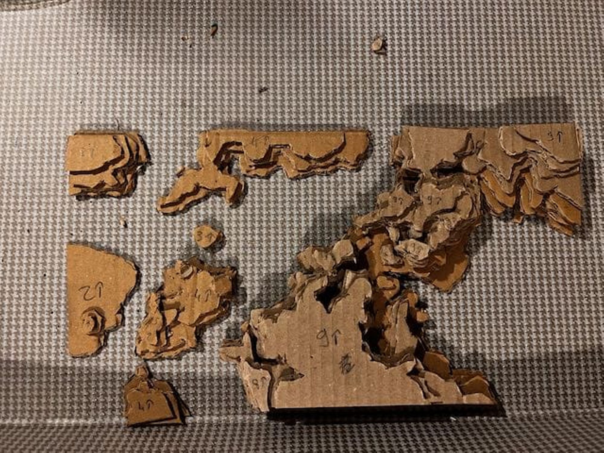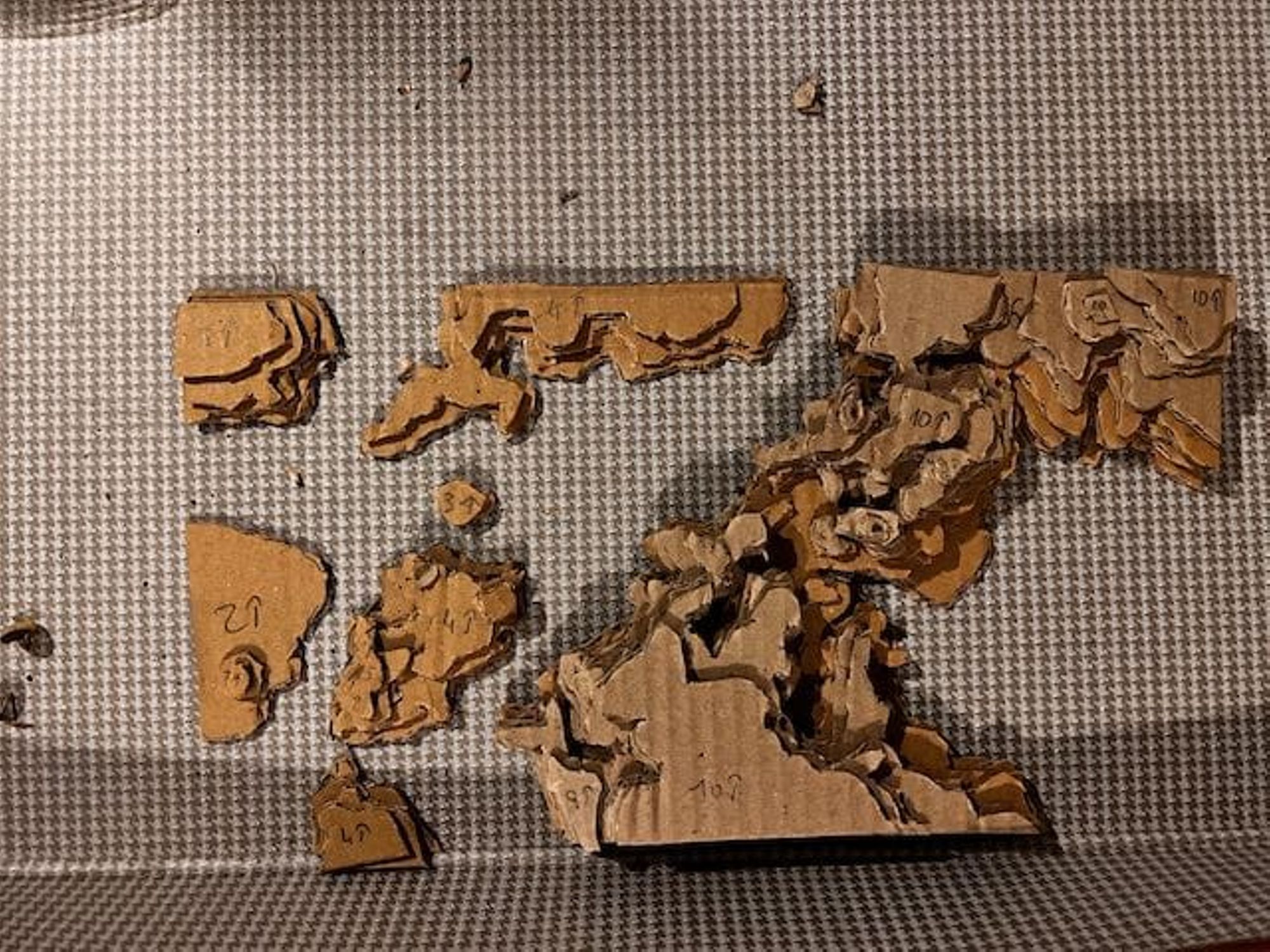 - Utiliser ces feuilles comme patron pour découper les couches de carton (voir les photos).