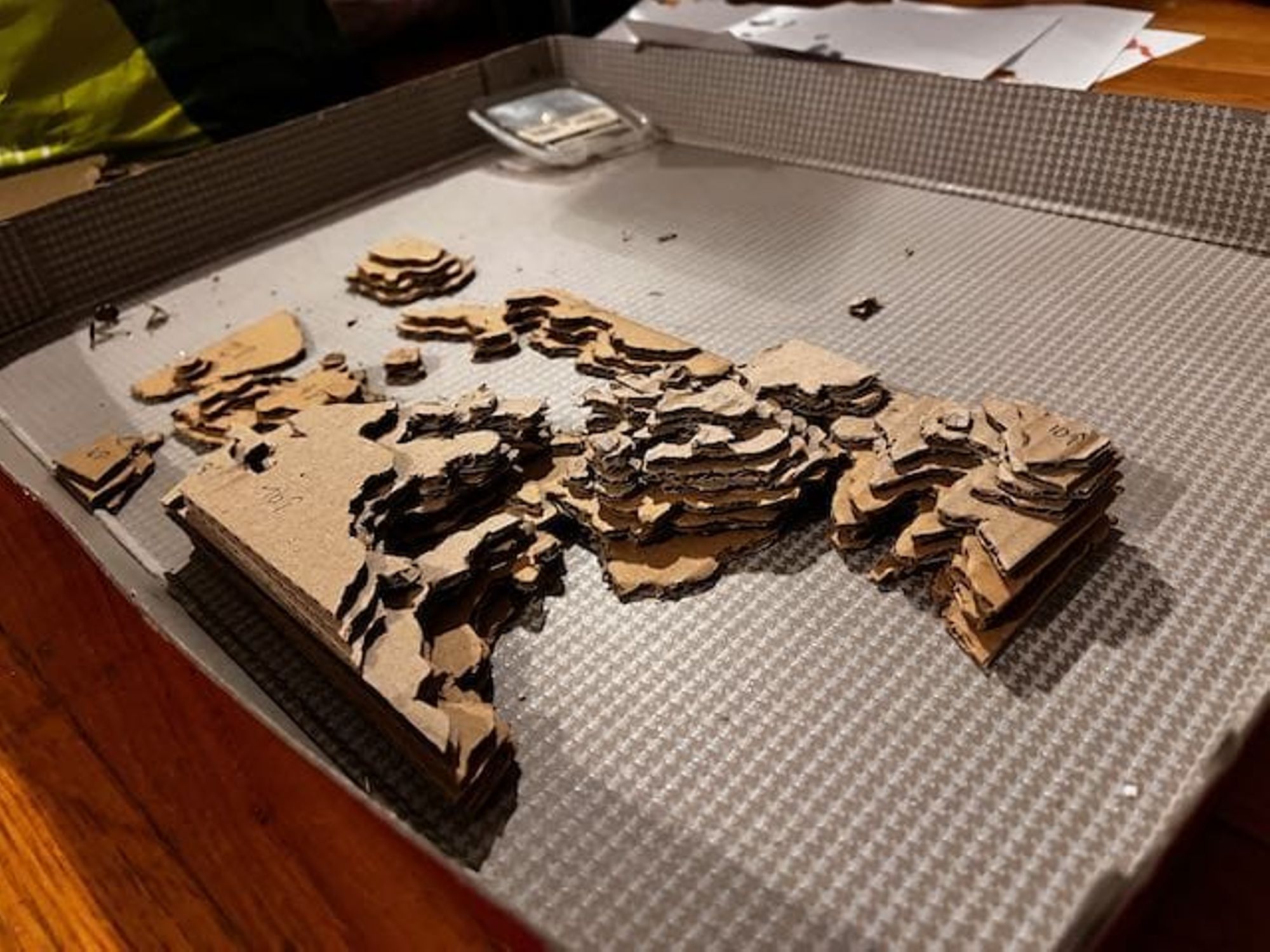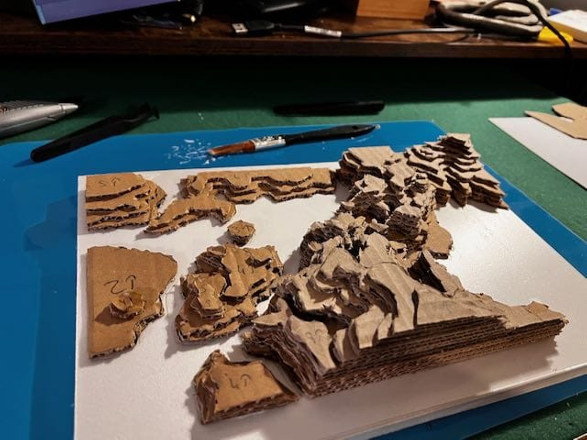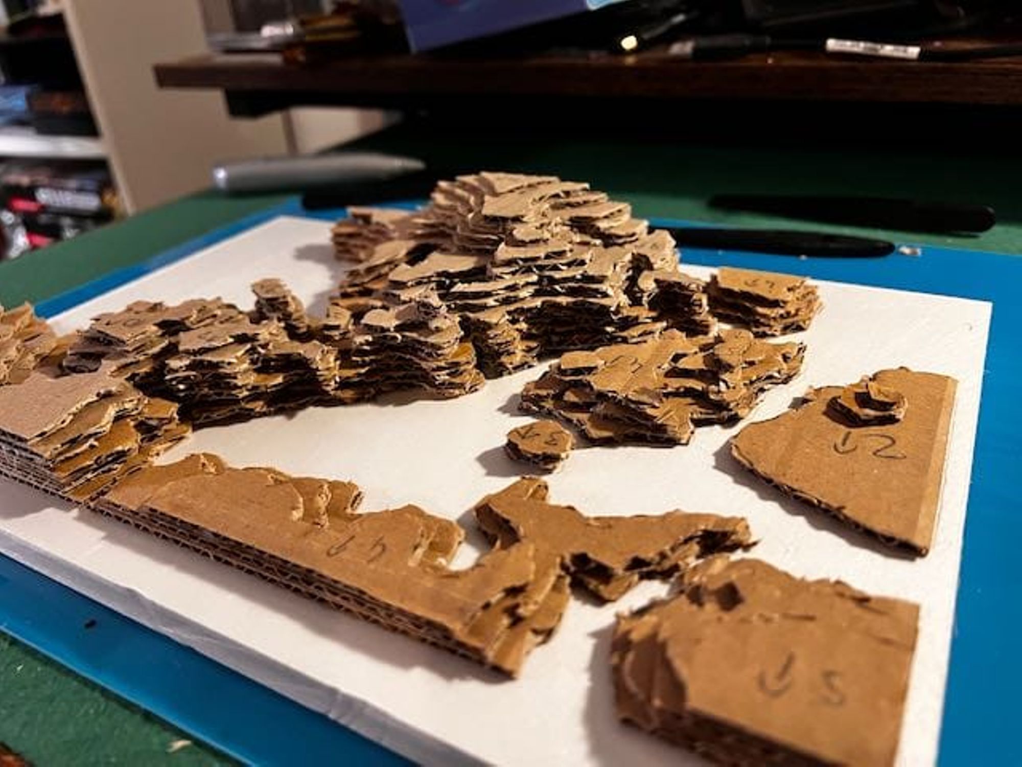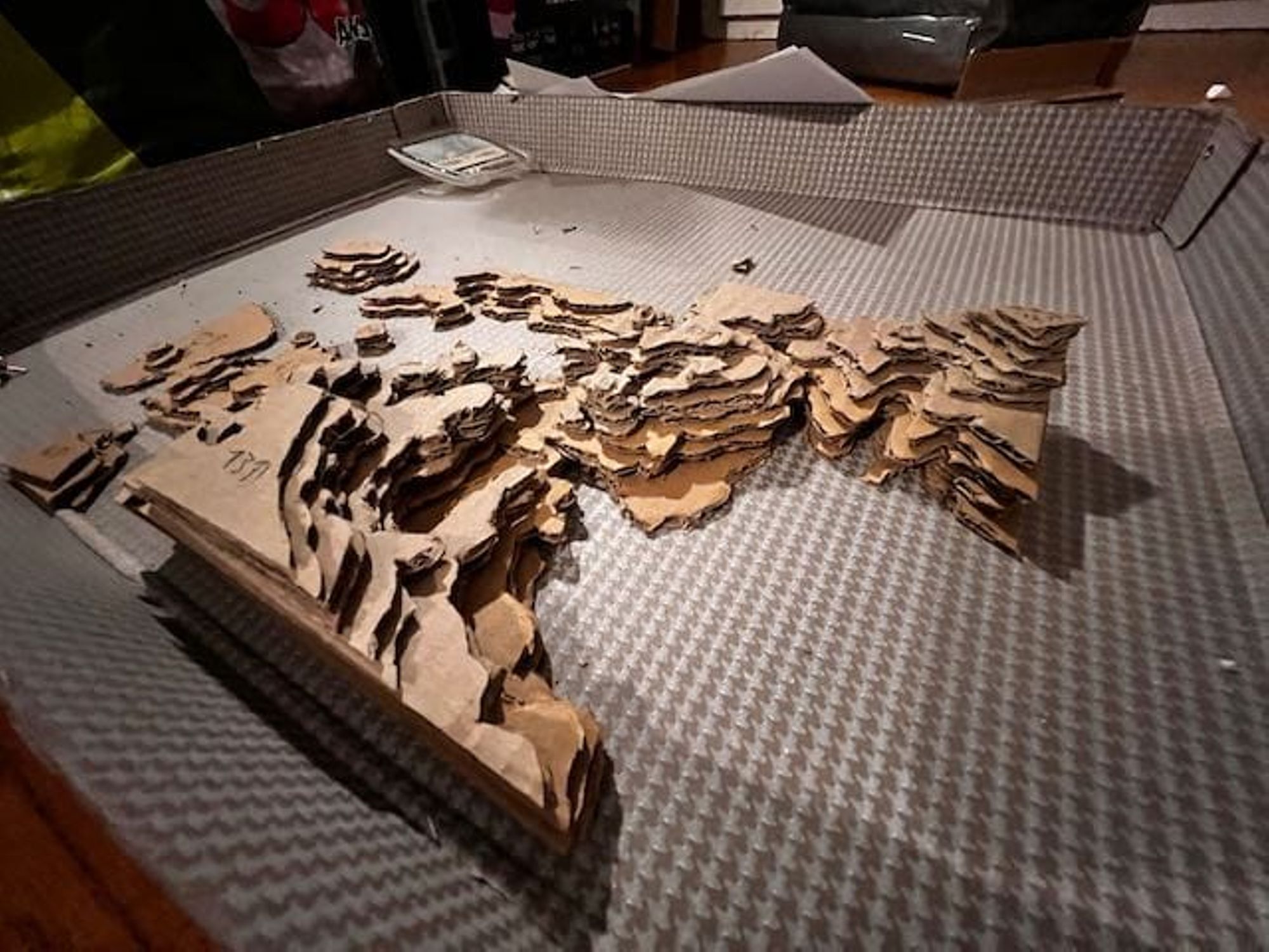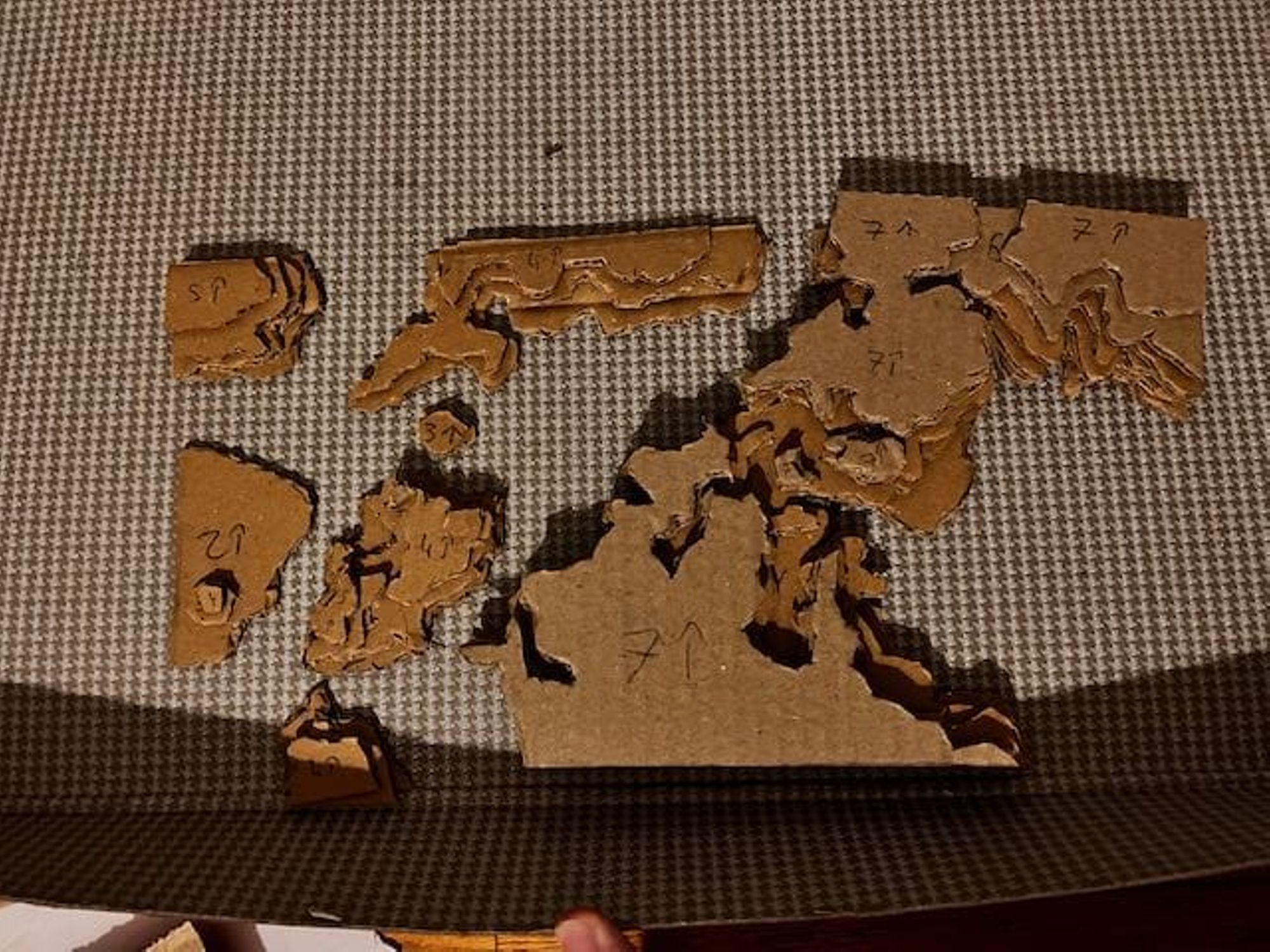 - Utiliser ces feuilles comme patron pour découper les couches de carton (voir les photos).