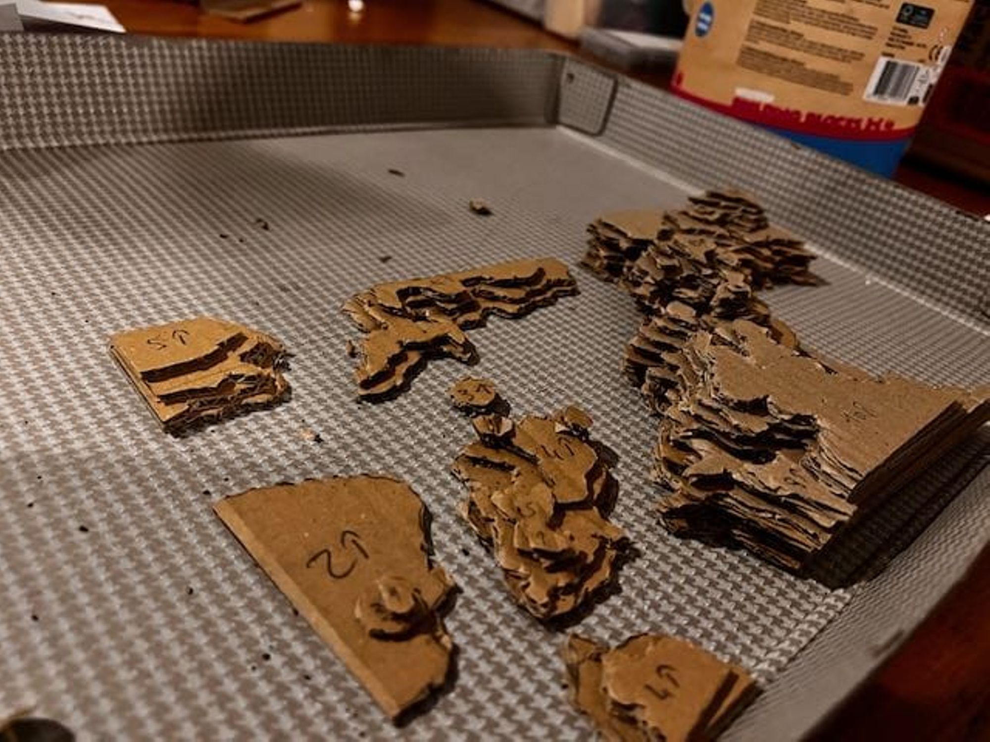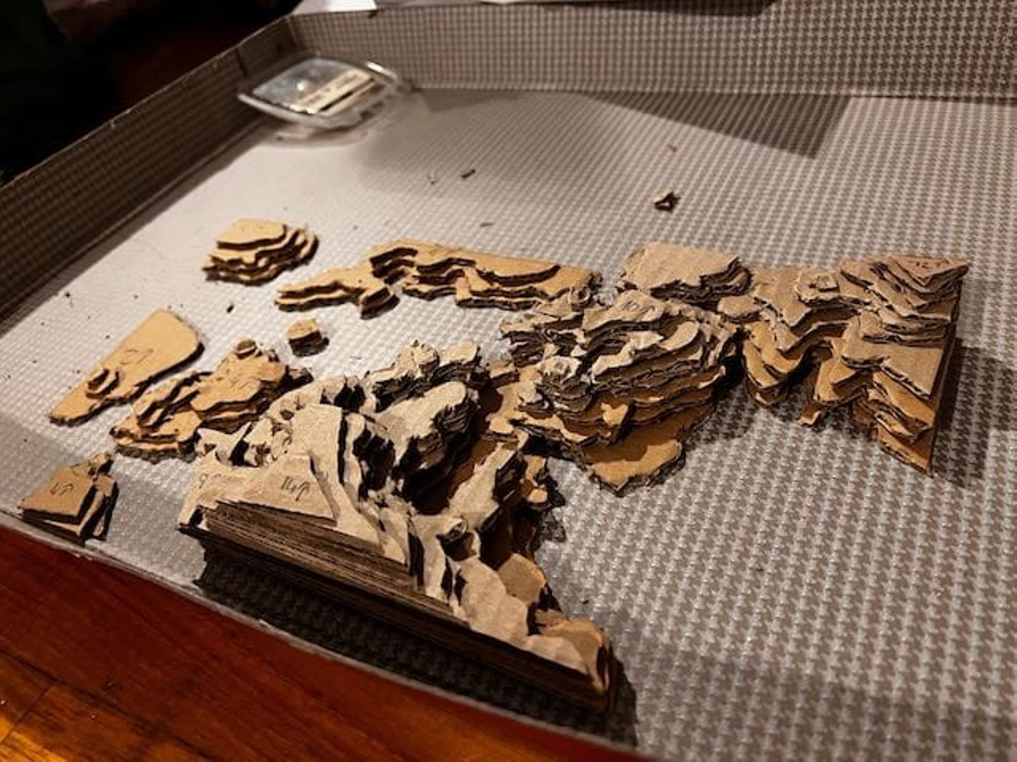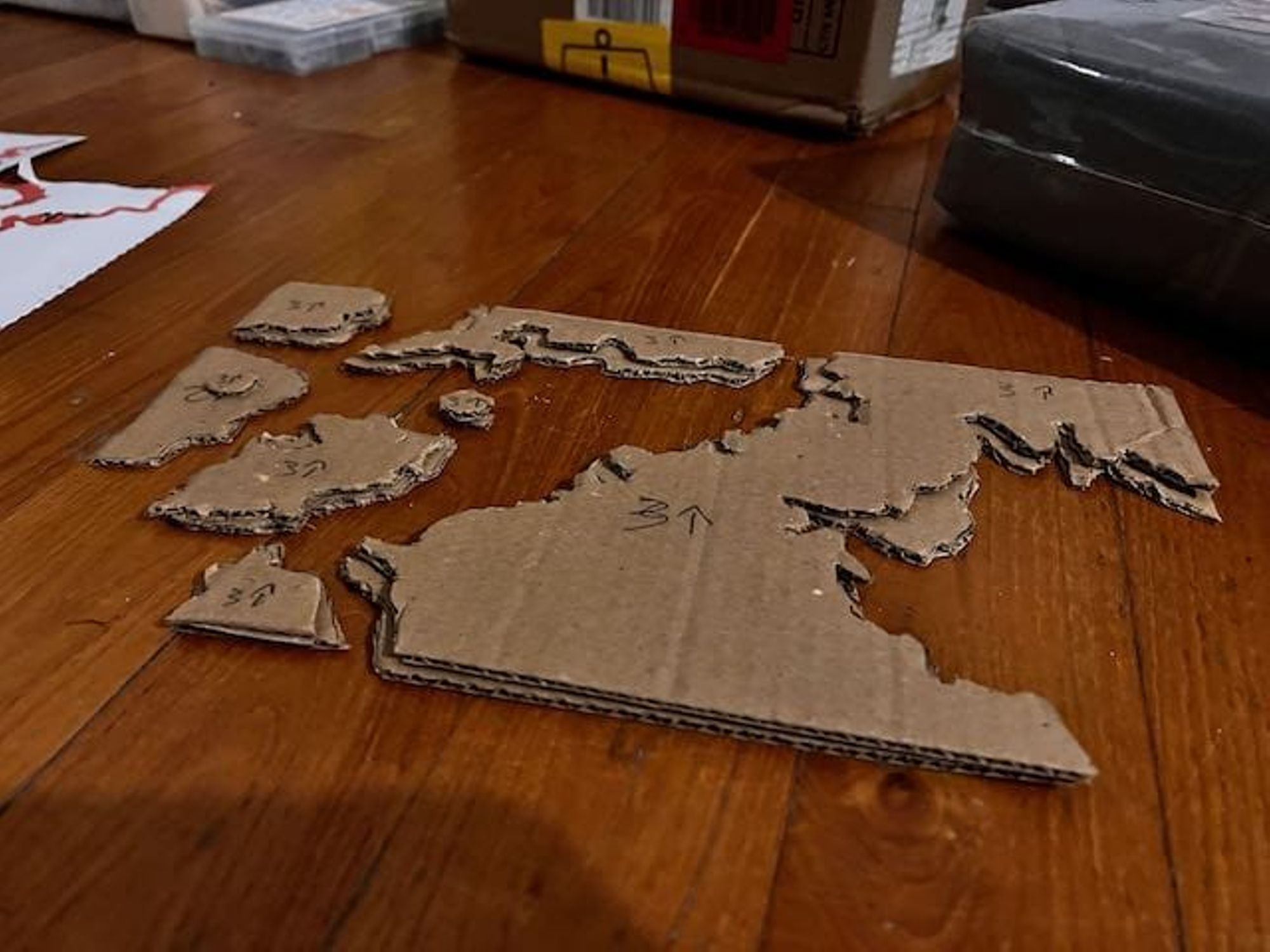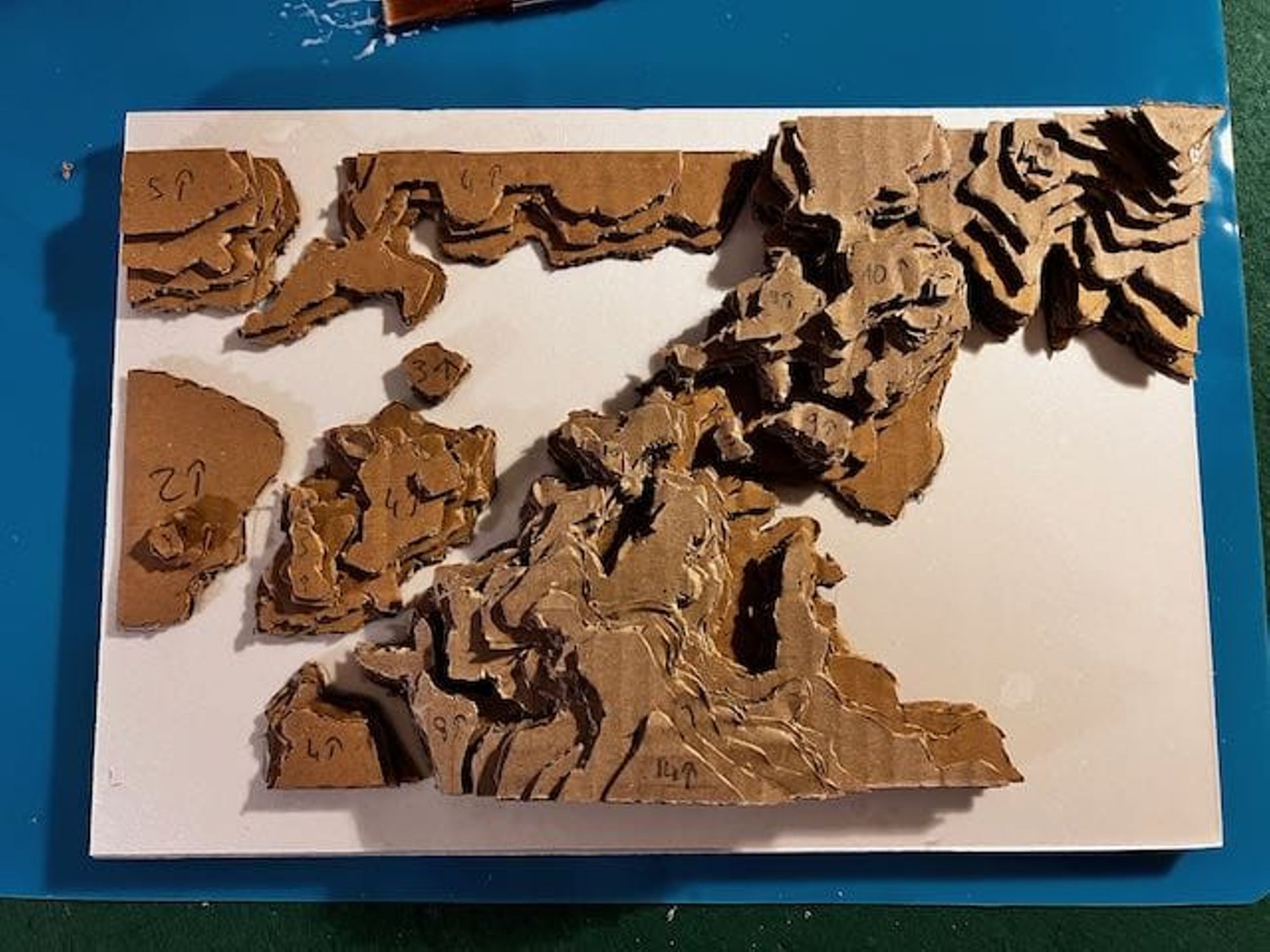 - Utiliser ces feuilles comme patron pour découper les couches de carton (voir les photos).